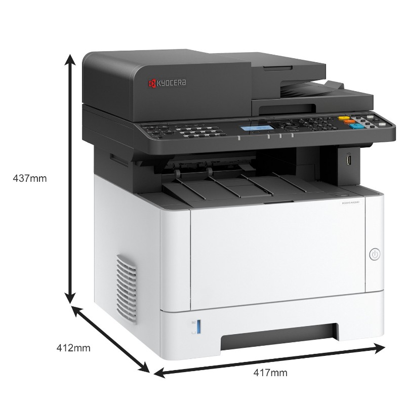 | В коробке | Kyocera ECOSYS MA3500x, черный стартовый тонер-картридж (1000 страниц), краткое руководство, инструкции по безопасности, шнур питания |