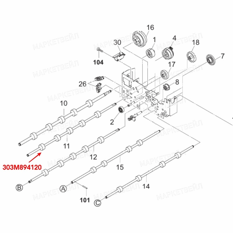 Вал подачи бумаги с роликами KYOCERA 303M894120 для ECOSYS FS-6525MFP/S-6530MFP