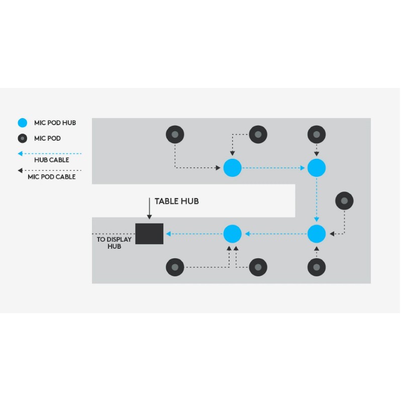 Примечание: Pod-хабы Rally Mic работают с системами Logitech Rally и несовместимы с отдельной USB-камерой Rally.