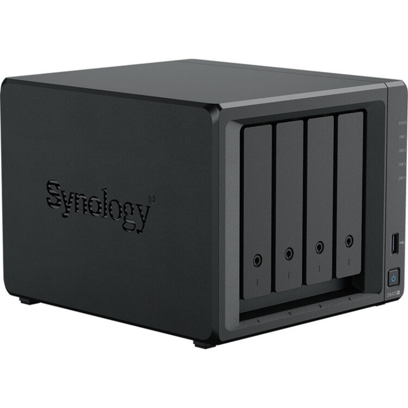 Корпус NAS DiskStation DS423+ 4-Bay от Synology — это способный инструмент для обеспечения безопасности, резервного копирования и синхронизации данных и носителей. Встроенные решения, доступные в ОС DiskStation Manager (DSM) от Synology, позволяют пользователям создавать собственное личное облако, организовывать и транслировать коллекции музыки, видео и фотографий на всех устройствах, бесшовно сотрудничать с партнёрами, настраивать интуитивно понятную систему наблюдения и многое другое. DS423+ оснащён четырьмя отсеками для дисков, способными натурально поддерживать 3,5" SATA-жёсткие диски, а также 2,5" SATA-диски и SSD.