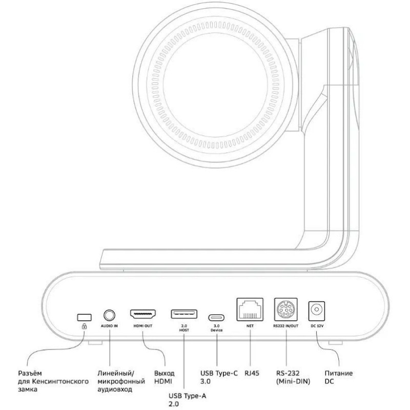 Камера, предназначенная для средних и больших помещений, обеспечивает реалистичную связь, автоматическим кадрированием и встроенным звуком.